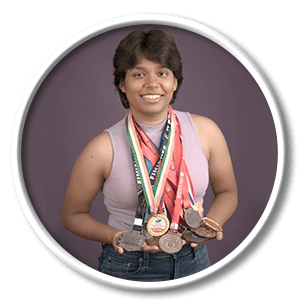 Mokshada has excelled in fencing, community service, and literature, earning the Women’s Achiever Award, Best Community Server Award, and Best Literary Book Award. She won gold medals in state and national fencing events, a silver at Khelo India Youth Games, and continues to demonstrate excellence across diverse fields.